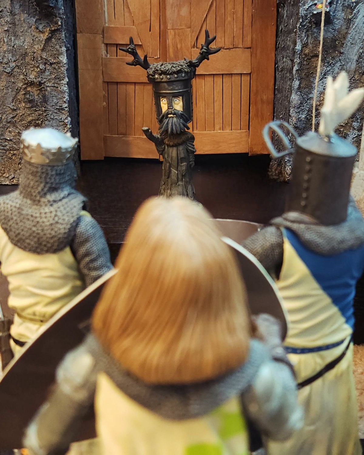 While this guy is a bit underscaled next to the Diamond Select action figure line, he physically fits on the shelf better while still requesting… a shrubbery!