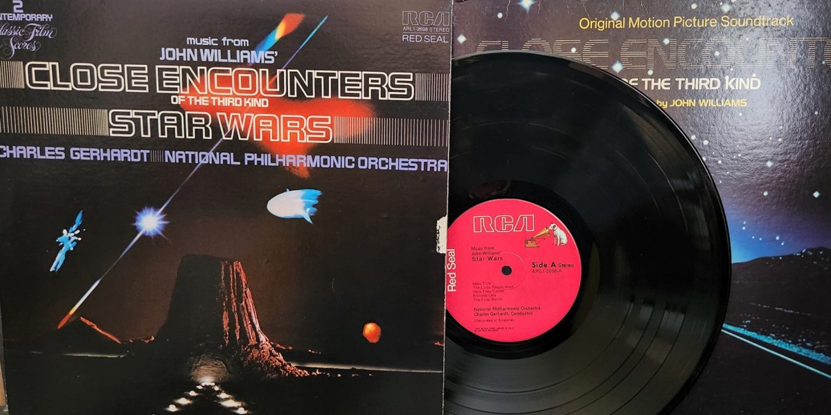 I could have used my copy of the Close Encounters Of The Third Kind (Original Motion Picture Soundtrack) by John Williams. Instead, I’ll showcase this alternate album. It features tracks from Star Wars on top. The B side includes a medley of Close Encounters music.