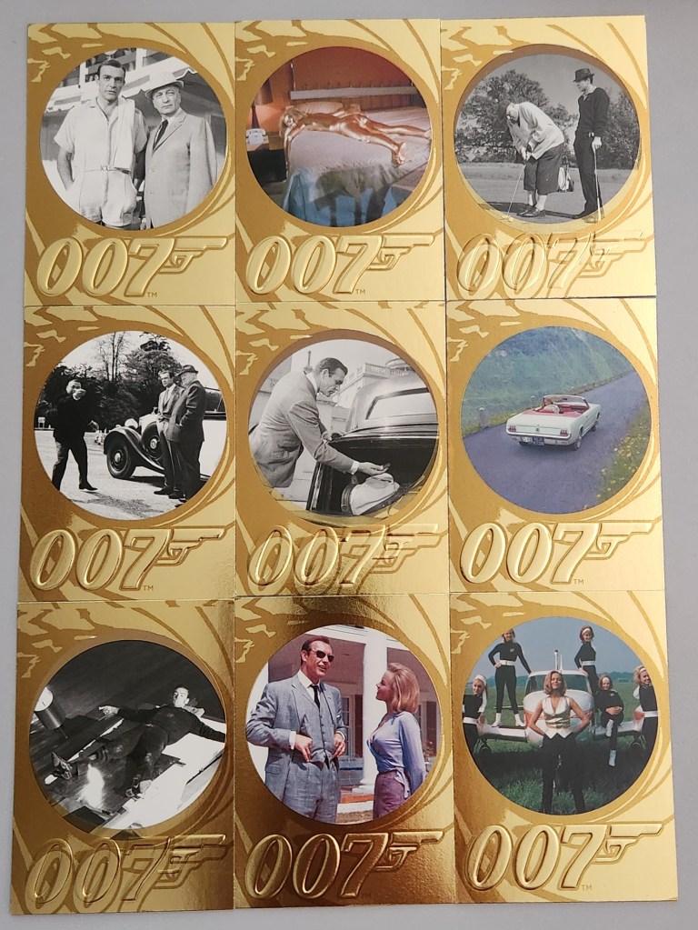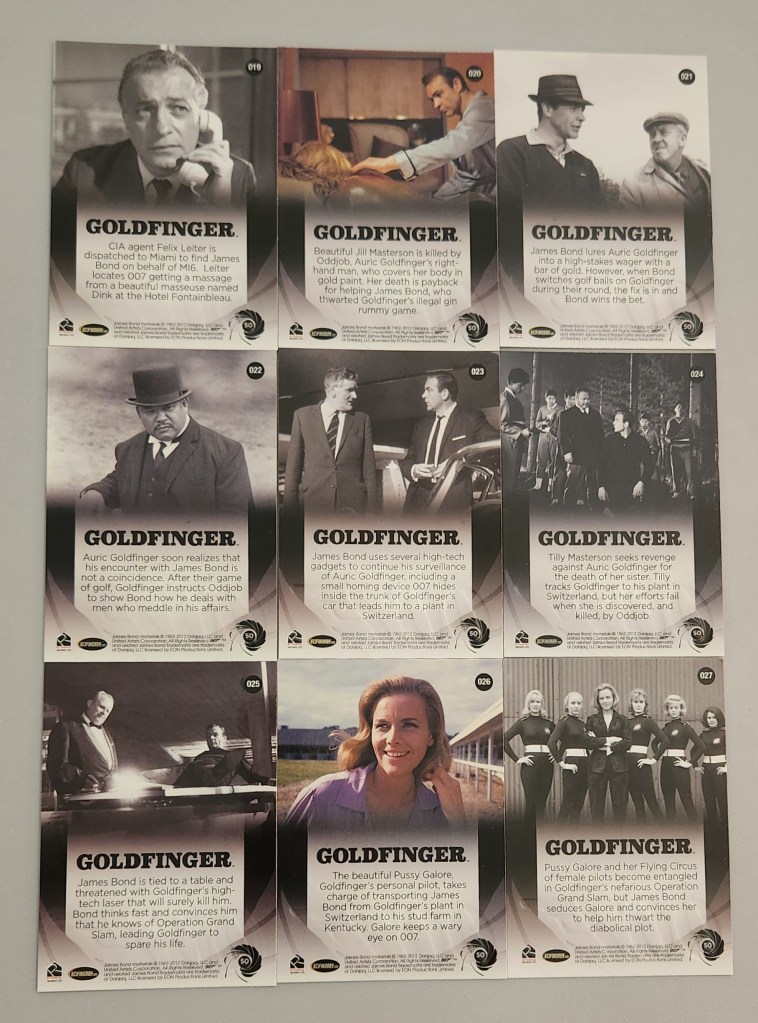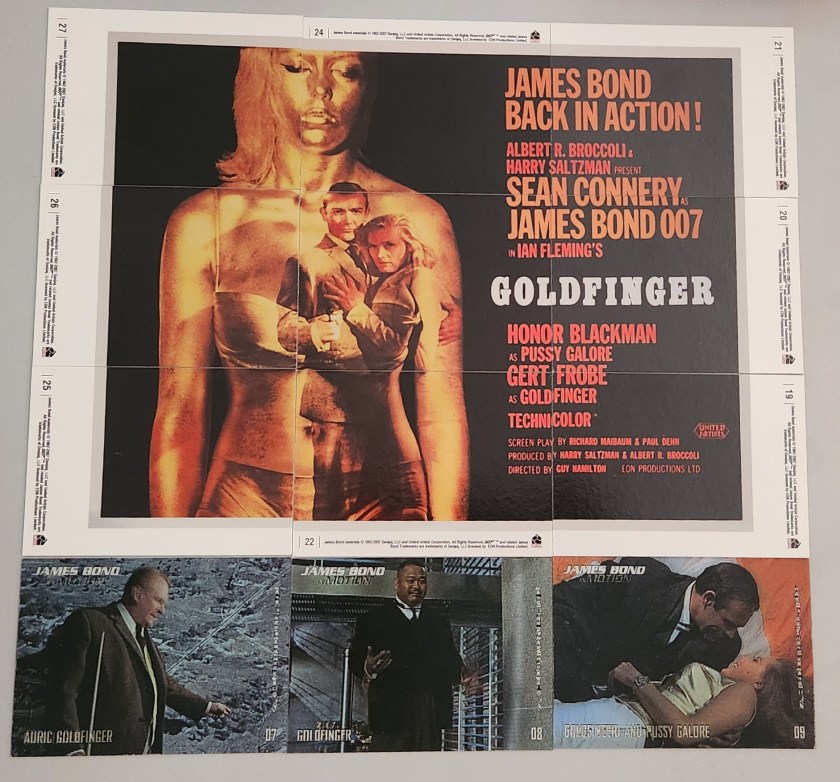 These cards offer a cool visual reminder of one of my favorite James Bond films. They also feature a fun poster puzzle on the back when you collect the nine Goldfinger cards from the set.