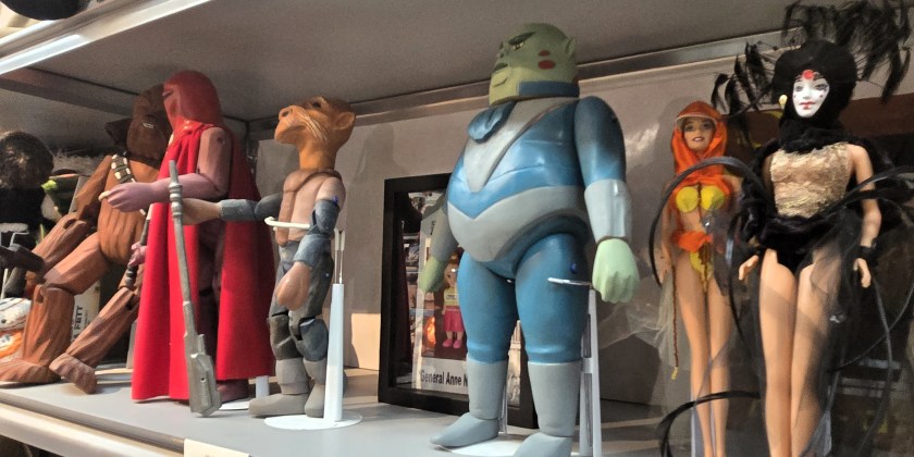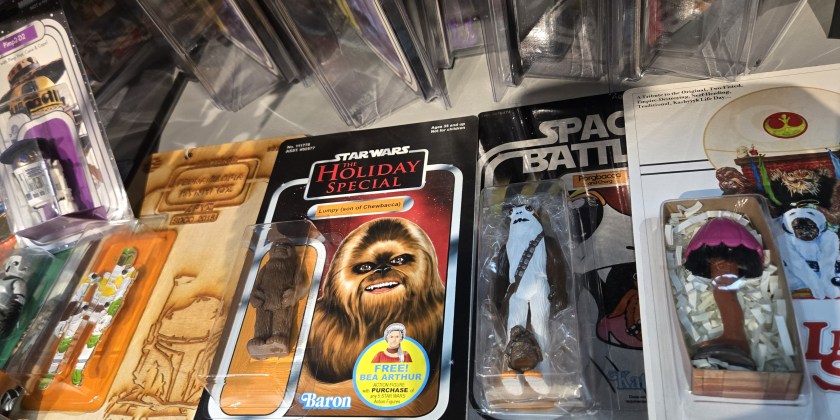 Since I’m a fan of both action figures and the Star Wars Holiday Special, I really liked this display. From Pimp2-D2 to Lumpy to a Wookiee leg lamp inspired by ‘A Christmas Story,’ there’s a lot of fun stuff here.