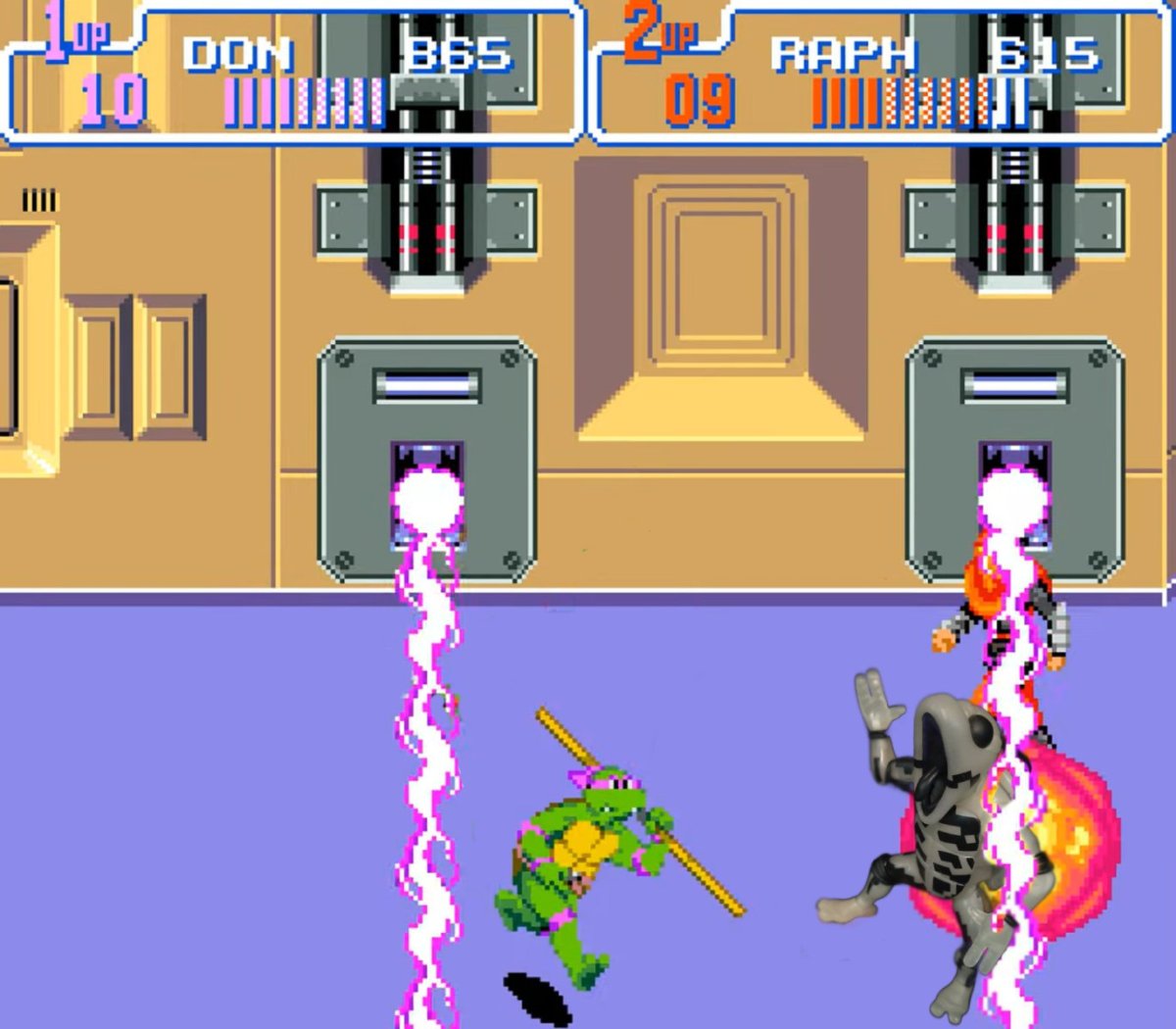 Getting zapped with high voltage is often portrayed humorously in movies and video games. Think of the Emperor zapping Darth Vader in Return of the Jedi or Marv getting electrocuted in Home Alone 2—seeing a glowing skeleton can be surprisingly funny. The creators of the 1991 Teenage Mutant Ninja Turtles: Turtles in Time arcade game and its SNES port, Teenage Mutant Ninja Turtles IV: Turtles in Time, clearly thought so too.