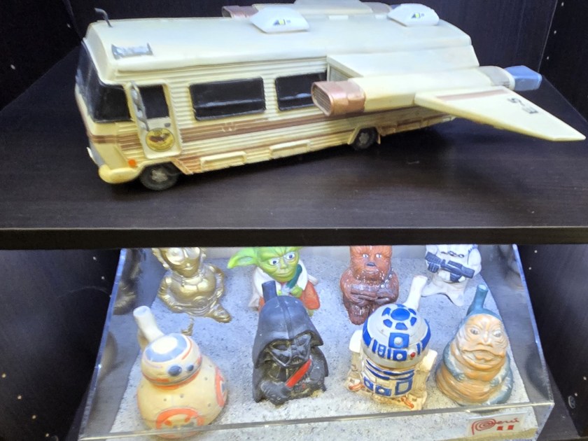 I’m not completely sure what everything is here, but I do recognize the 1986 Winnebago Chieftain motorhome on the top shelf, also known as the Eagle 5, which Lone Starr and Barf used in Spaceballs.