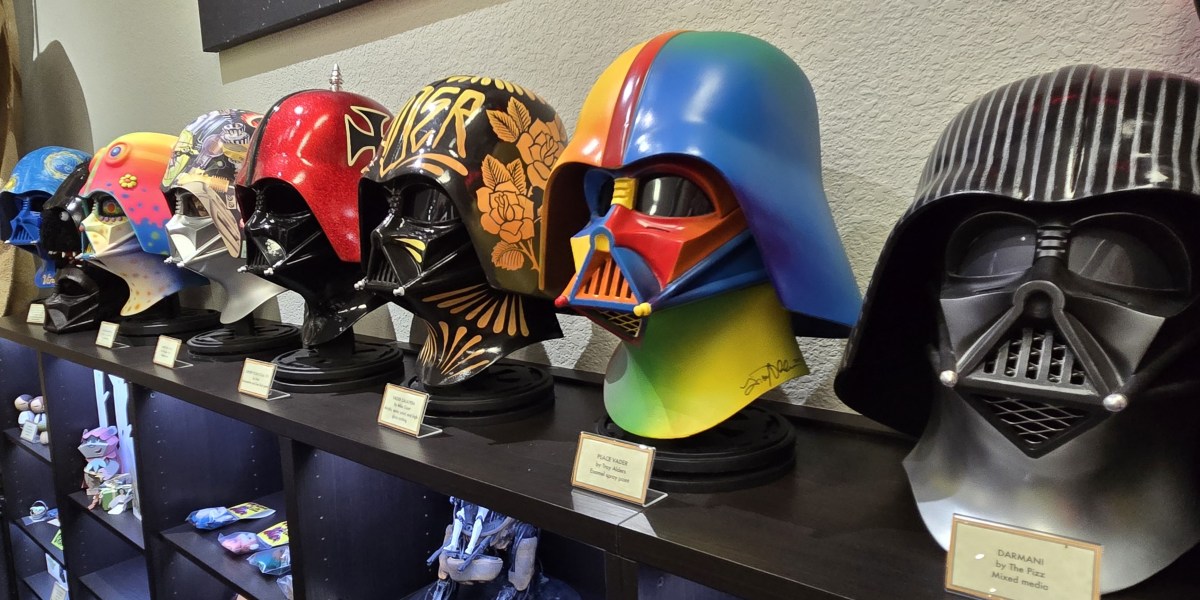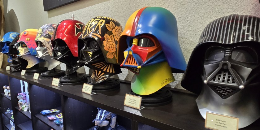 One last photo for today: here’s another awesome collection of helmets from a galaxy far, far away. The Vader Project reimagined the famous Darth Vader helmet by featuring 100 unique designs. The collection appeared at eight exhibitions, including several Star Wars Celebrations, across three countries. Afterward, the helmets were auctioned and ended up with collectors around the world, including many now residing at ROW.