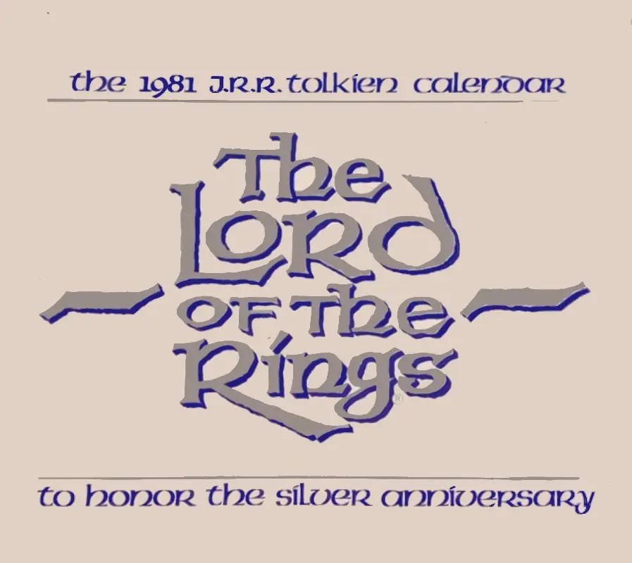 In 1981, Tolkien Enterprises released several J.R.R. Tolkien calendars. This particular Lord of the Rings calendar highlights “To Honor the Silver Anniversary,” which likely refers to the 25th anniversary of the publication of Return of the King in the US.