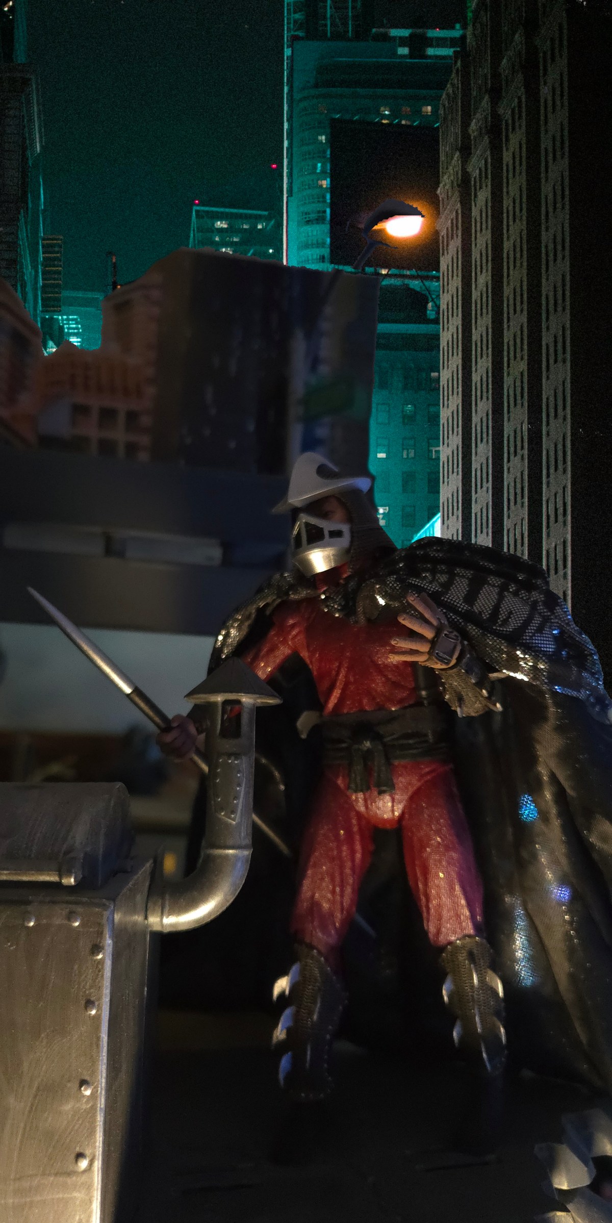 His role is grounded in a classic revenge tragedy, rooted in a blood feud with Hamato Yoshi. He is a lethal martial arts master whose presence is defined by silence and sharp steel, serving as a dark mirror to Splinter; while Splinter fosters growth through discipline and love, Shredder demands obedience through fear and greed. This Shredder is the embodiment of the city’s shadows—a cold, predatory force that forces the Turtles to grow up.