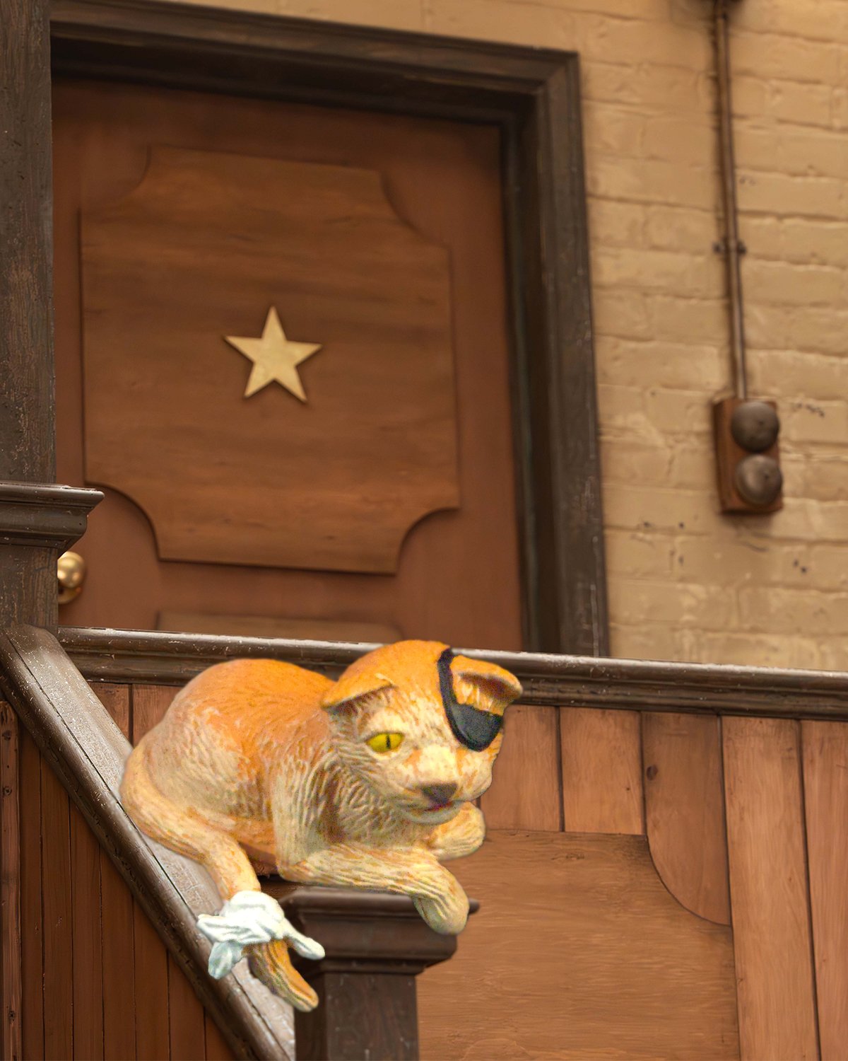 Gaffer first appeared in Episode 419 of The Muppet Show, the one with Lynda Carter, and played a special part as the show’s “living scenery.” While the main cast is full of energy, Gaffer is a quiet figure who helps make the Muppet Theater feel real and lived-in. This scruffy, one-eyed calico cat is the theater’s mascot, often spotted lounging on backstage crates or weaving between the legs of busy crew members. She got her name from a “gaffer,” the head of the electrical department on a film set, which made her feel like part of the technical team.