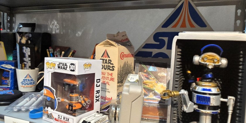 A nice collection of Star Tours theme park merchandise, both new and old.
