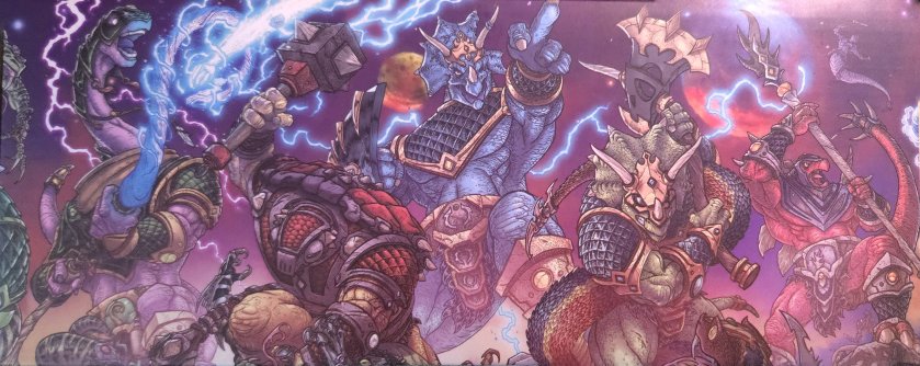 I have picked up other anthropomorphic dinosaur action figures before. These include Saurozoic Warriors from Boss Fight Studios, as well as Teenage Mutant Ninja Turtles Triceratons from NECA Toys. However, this line gave me another option. Besides those lines being scaled much smaller than this 8.5″ beast, their character offerings were already established as coming with a character-specific color scheme.